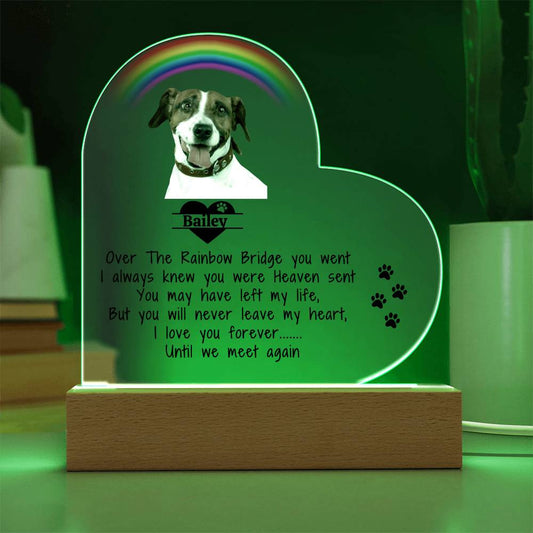 Pet Memorial Acrylic Heart Plaque - Over The Rainbow Bridge