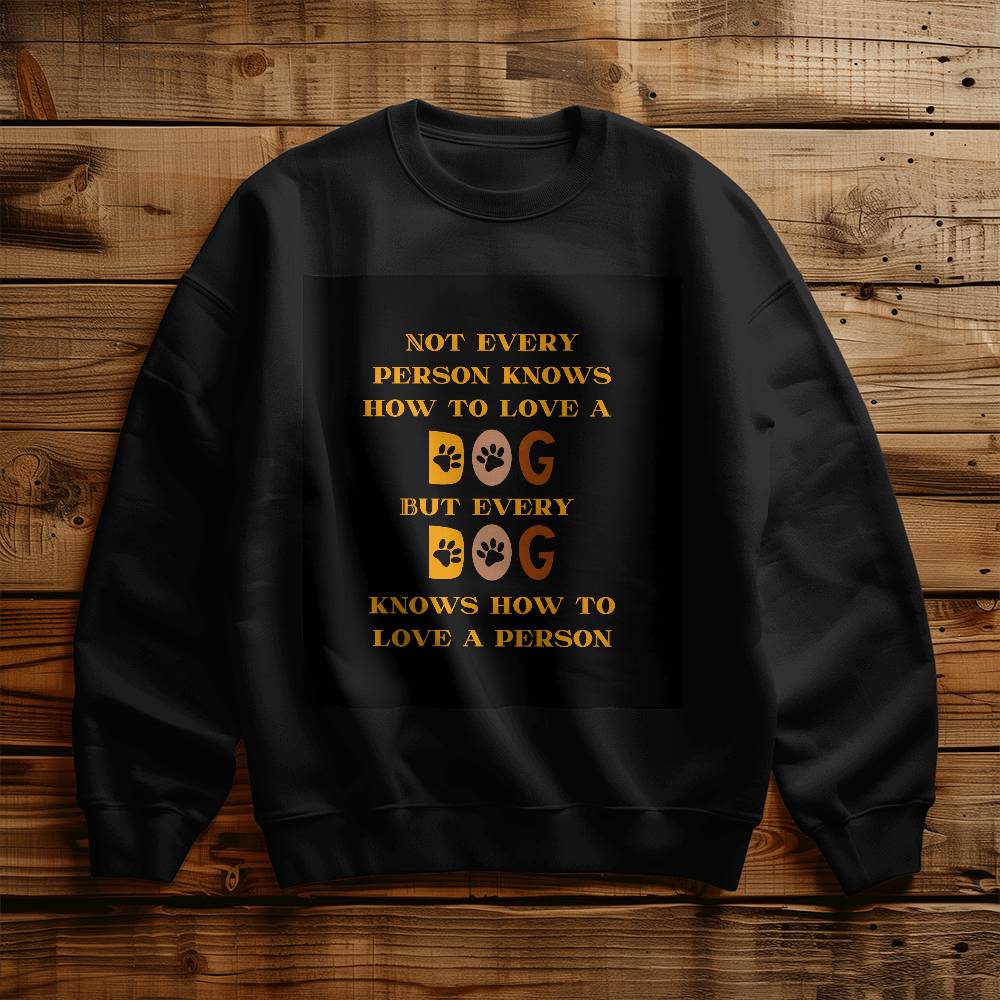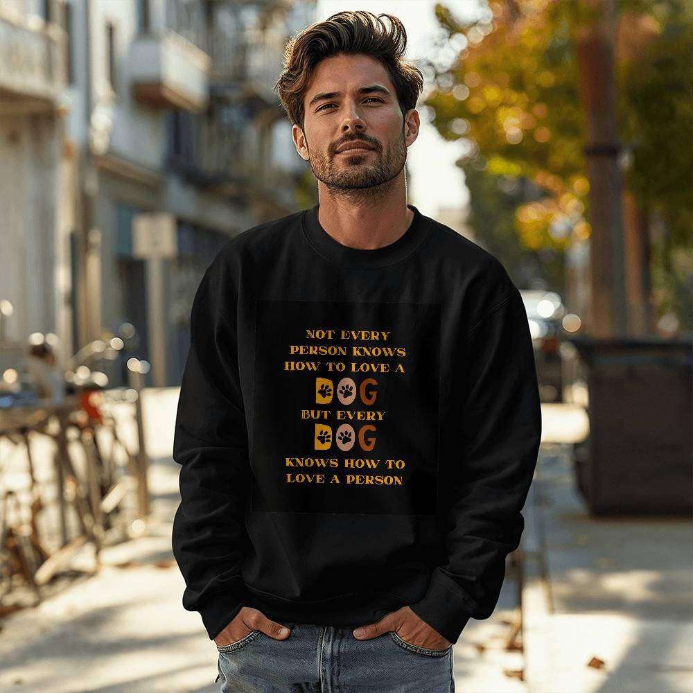 Experience the perfect blend of comfort and style with the Gildan 18000 Unisex Crewneck Sweatshirt! Crafted for warmth and breathability, this versatile pullover is designed to fit everyone beautifully. A wardrobe essential, it features the heartfelt message, "Not every person knows how to love a dog, but every dog knows how to love a person." This sweatshirt is a must-have for any dog lover.